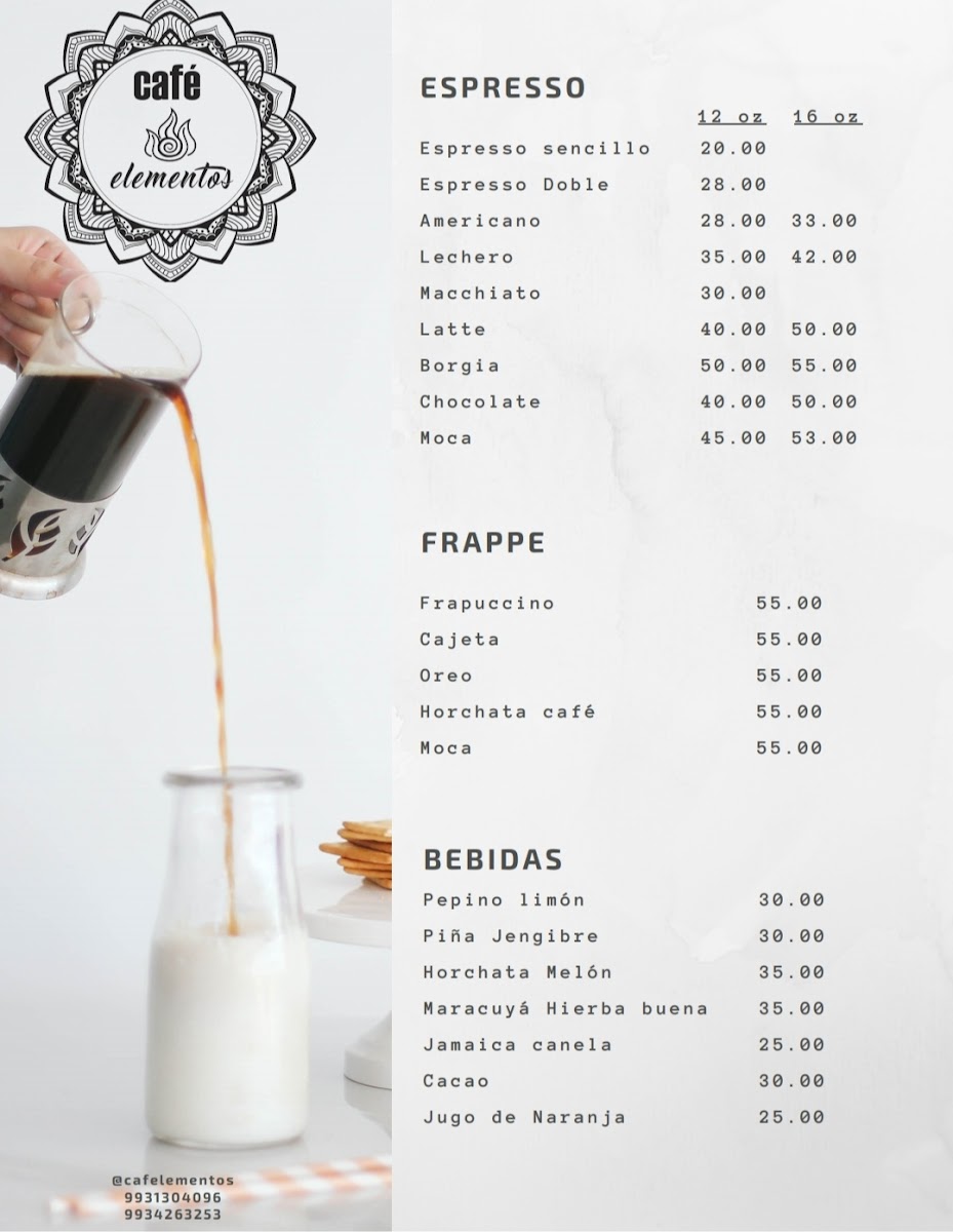 Cafe Elementos Menu